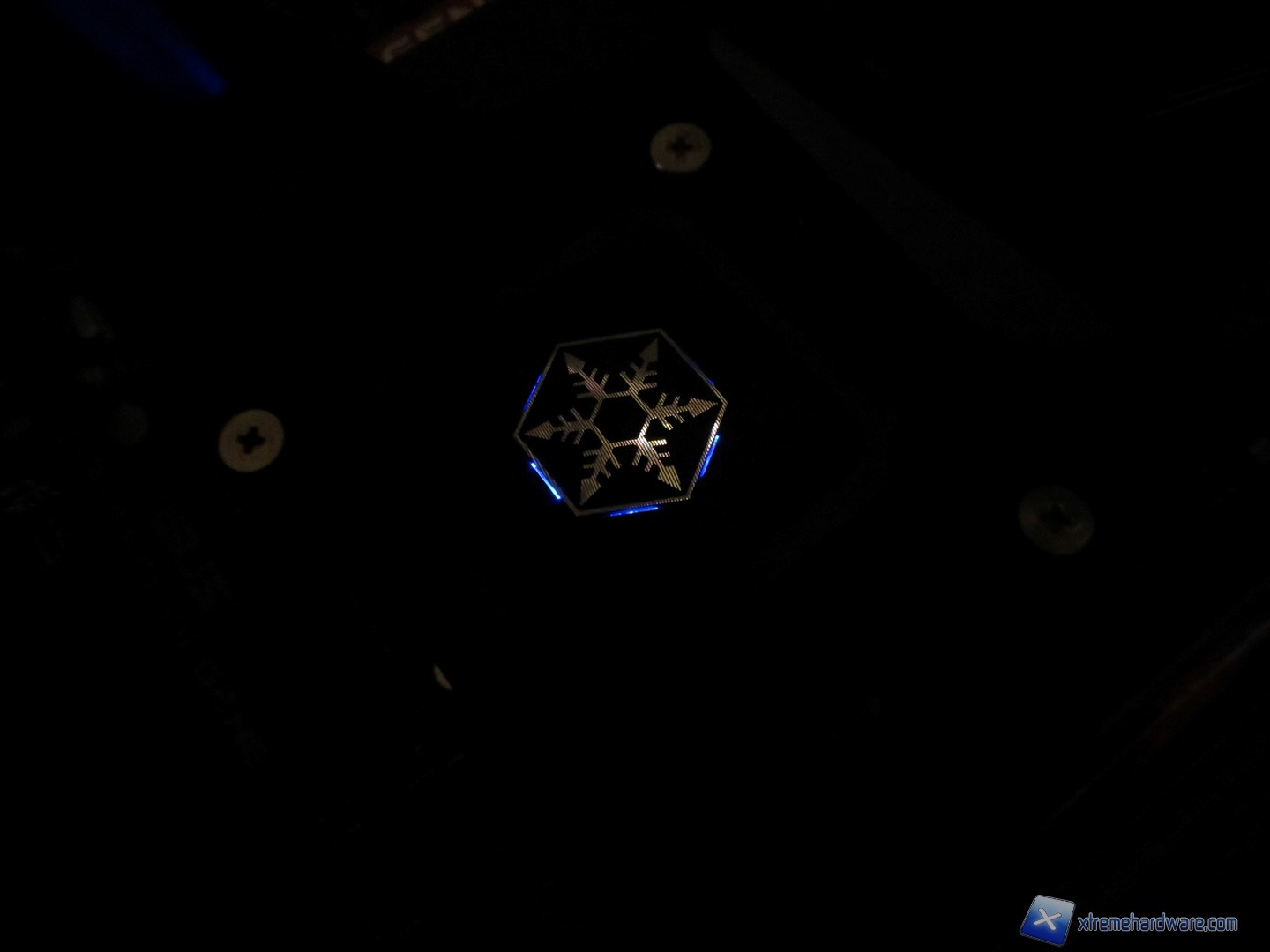 Dettaglio del LED blu illuminato di notte quando avremo il PC e l’AIO in funzione.
