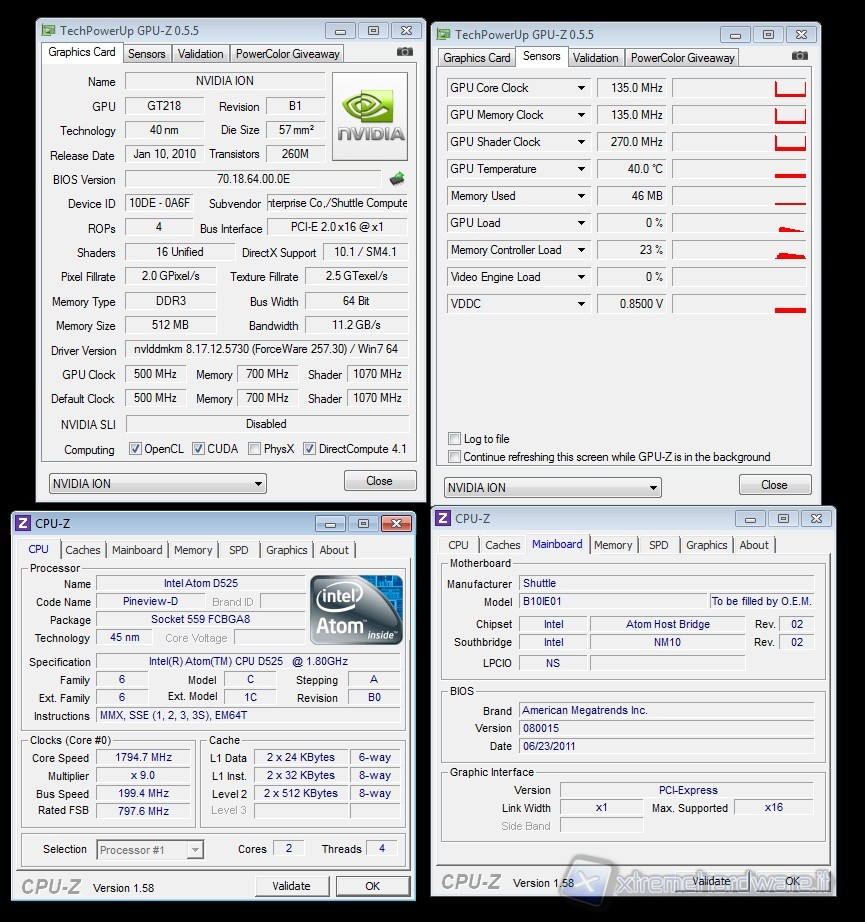 Ecco invece una schermata che ci mostra tutti i parametri del nostro sistema, abbiamo usato il software di monitoring CPU-z per la cpu, scheda madre e memorie, mentre per il sottosistema video abbiamo usato l'utility GPU-z: